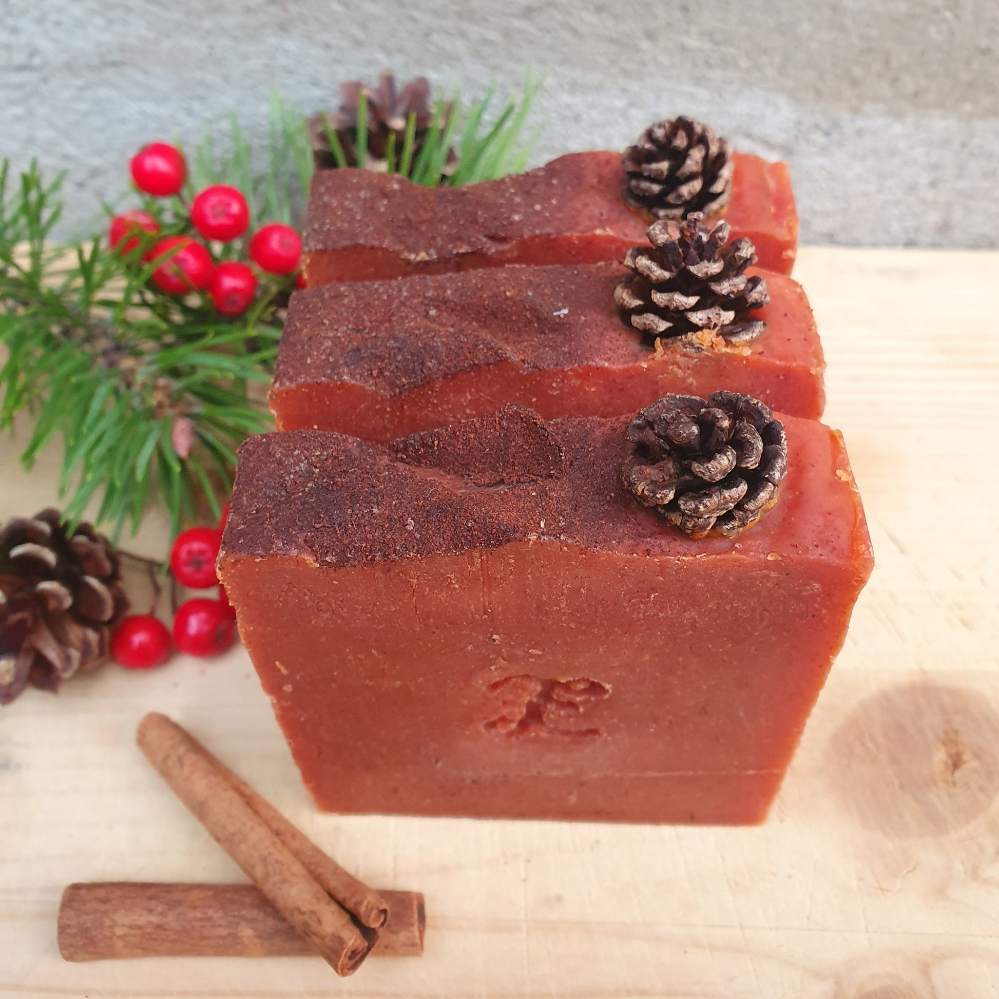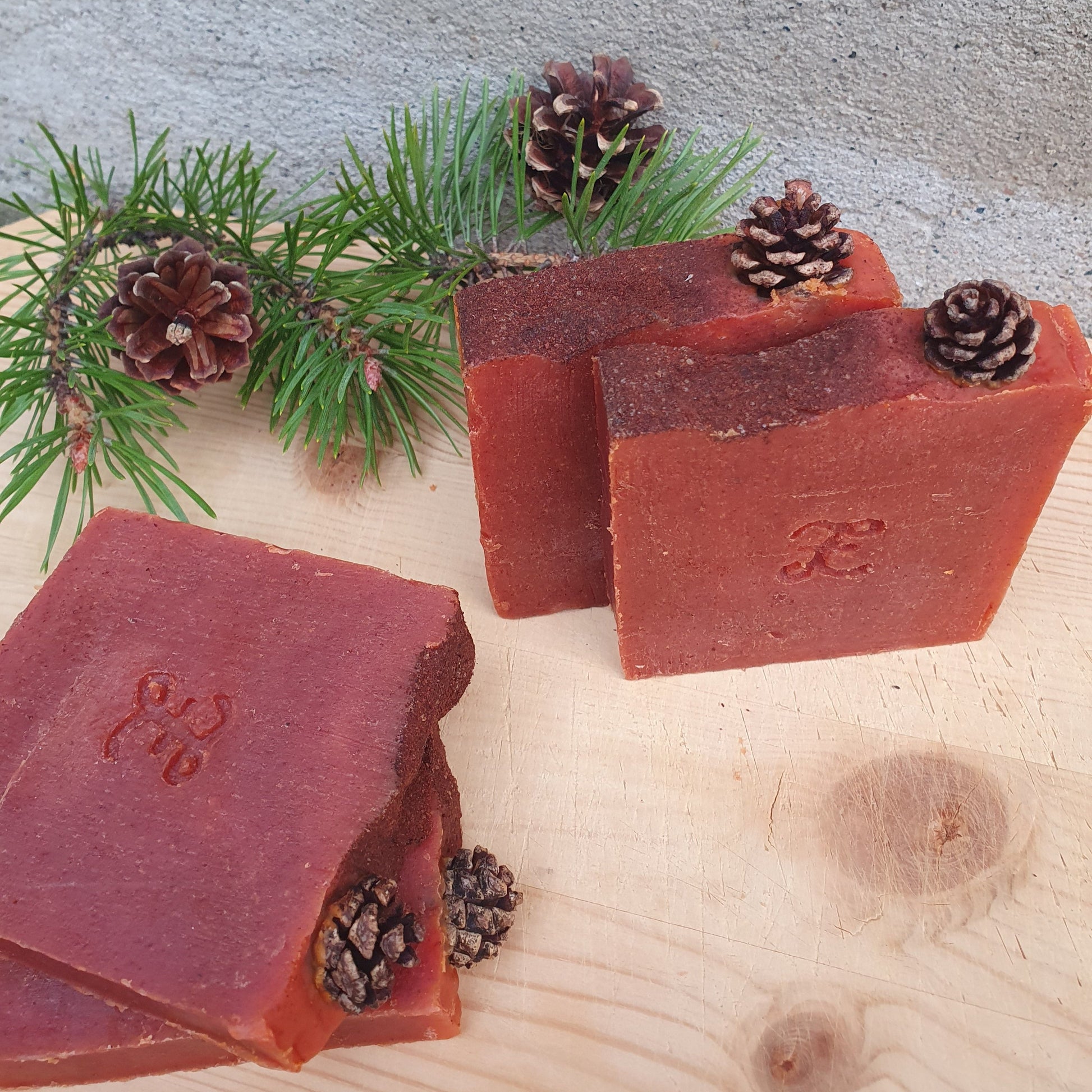 Julesåpen er laget med paprika for å få den røde fargen. Såpen er pyntet med en liten kongle plukket i Porsanger og et dryss med kanel. Paprika gir såpen en lett skrubbeffekt, og gjør den til en fin hånd-og kroppssåpe. Såpen er produsert med begrenset antall.